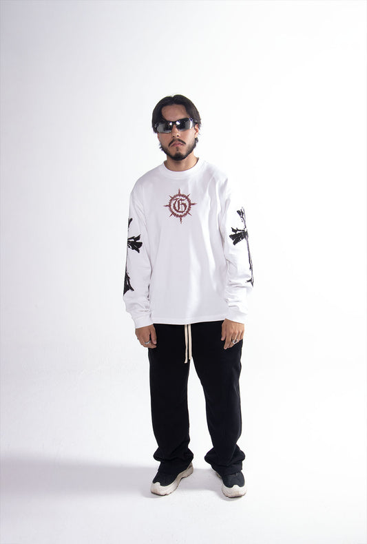 Playera Semi Oversize Blanca Manga Larga 275 GSM